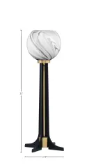 This sophisticated accent lamp combines matte black and new age brass finishes with a unique 5.75" onyx swirl glass shade. At 22" tall with an 8.5" base, it's perfectly sized for side tables and desks, offering both ambient lighting and decorative appeal.