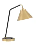This eye-catching desk lamp combines a matte black base with a new age brass cone shade for a sophisticated industrial aesthetic. The 7-inch directional shade provides focused task lighting perfect for reading and working.