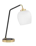 This contemporary desk lamp combines matte black and brass finishes for a sophisticated look. The 6" white marble glass shade provides soft, ambient lighting perfect for workspaces. Compact 15" width fits most desks.