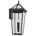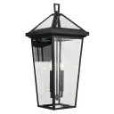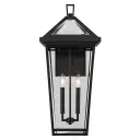 The Regence outdoor wall light brings Old World elegance to exterior spaces with its textured black finish and clear beveled glass panels. At 26 inches tall, this substantial 2-light fixture makes a statement on larger homes.