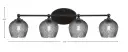 The Capri 4 Light Bath Bar makes a striking statement with its bold matte black finish and four smoke textured glass shades. Perfect for larger vanities, this fixture combines modern industrial style with soft, diffused lighting.