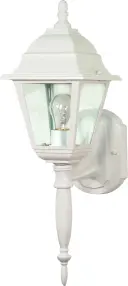 The Briton wall lantern combines traditional styling with clear seeded glass for a charming outdoor lighting solution. At 18 inches, it provides substantial presence while the white finish offers versatile appeal.