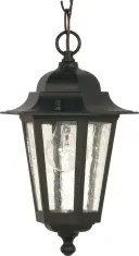 The Cornerstone hanging lantern brings traditional elegance to outdoor spaces with its 13-inch profile and clear seeded glass. Perfect for porches, patios, and entryways, this fixture combines classic design with durable outdoor construction.