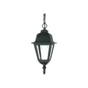 The Briton hanging lantern combines traditional design with durable outdoor construction. Its textured black finish and clear glass panels create elegant illumination for entryways, porches, and patios.
