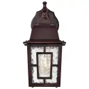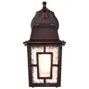 The Banyan outdoor wall sconce combines architectural geometry with clear water glass for a sophisticated exterior lighting solution. Its 12-inch profile and rustic bronze finish deliver timeless appeal.