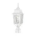 The Banyan outdoor post lantern combines clean architectural lines with decorative geometric inlays and textured water glass. Its transitional design and durable construction make it ideal for enhancing entryways and pathways.