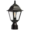 The Briton post lantern combines classic styling with budget-friendly pricing. Its square-top design and clear glass panels create welcoming illumination for entryways and pathways while complementing various architectural styles.