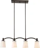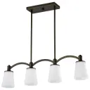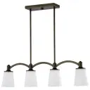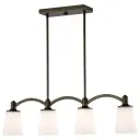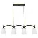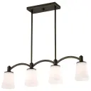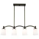 The Laguna 4-light island pendant combines contemporary elegance with practical illumination. Its forest bronze finish and white glass shades create a refined look perfect for modern and transitional interiors.