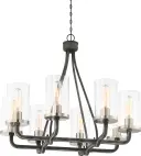 8 Light - Sherwood Chandelier - Iron Black with Brushed Nickel Accents Finish - Clear Glass - Lamps Included