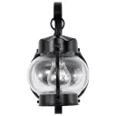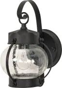 This traditional onion-style wall lantern brings timeless curb appeal to any exterior space. The textured black finish and clear seeded glass create visual interest while providing reliable outdoor illumination.
