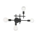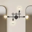 The Delphi vanity light brings contemporary style to bathroom spaces with its clean black finish and four exposed G25 bulbs. Perfect for medium-sized vanities, this fixture provides ample illumination while adding modern architectural interest.