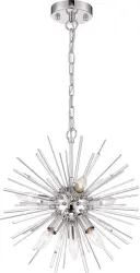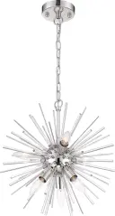 The Cirrus chandelier combines polished nickel hardware with clear glass rods to create a sophisticated focal point. Its six-light configuration provides ample illumination while the contemporary design adds visual interest to dining rooms and entryways.
