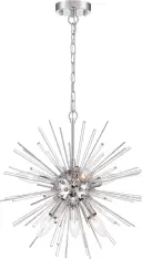The Cirrus chandelier combines contemporary elegance with eye-catching glass rod details. Its polished nickel finish and 8-light configuration provide both sophisticated style and ample illumination for dining rooms and foyers.