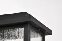 The Sullivan post light delivers no-nonsense styling with a stretched metal frame and clear seeded glass that creates beautiful bands of illumination. Its matte black finish coordinates effortlessly with any home exterior.
