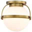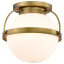 The Lakeshore flush mount combines natural brass warmth with soft white opal glass diffusion, creating an inviting ambiance perfect for intimate spaces. Its low-profile design suits standard ceiling heights while delivering style.