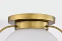 The Lakeshore flush mount combines natural brass warmth with soft white opal glass diffusion, creating an inviting ambiance perfect for bedrooms, living areas, and hallways. Its transitional design bridges traditional and modern aesthetics.