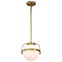 The Lakeshore Small Pendant combines natural brass warmth with white opal glass diffusion, creating romantic ambient lighting perfect for intimate spaces. Its compact size and transitional design make it versatile across traditional and contemporary interiors.