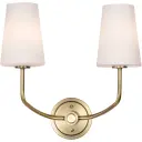 The Cordello 2-Light Sconce combines traditional elegance with versatile styling. Its vintage brass finish and etched white opal glass shades create a soft, diffused glow perfect for bathrooms and hallways.