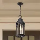 The Wilton hanging lantern combines timeless design with practical outdoor lighting. Its matte black finish and clear seeded glass create a welcoming ambiance while providing excellent light coverage for entryways and porches.