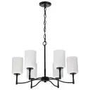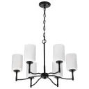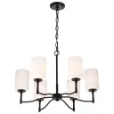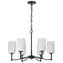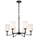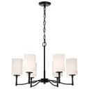 The Liam 6-Light Chandelier masterfully bridges traditional and contemporary design with its matte black finish and soft white opal glass shades. This versatile fixture delivers understated elegance suitable for both residential and light commercial spaces.
