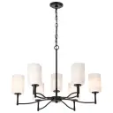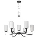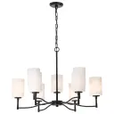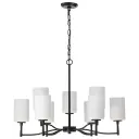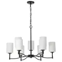 The Liam 9-Light Chandelier masterfully bridges traditional and modern design with its matte black finish and soft white opal glass shades. Perfect for creating sophisticated ambiance in dining rooms and entryways.