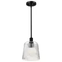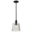 The Grayson Small Pendant perfectly blends rustic industrial style with contemporary elegance. Its matte black finish and textured ribbed glass create visual interest while maintaining clean lines for modern spaces.