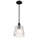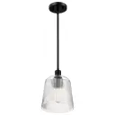 Grayson - Small Pendant - Matte Black Finish - Clear Ribbed Glass