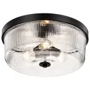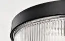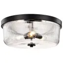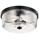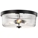 The Grayson Large Flush Mount combines rustic industrial style with contemporary elegance. Its matte black finish and clear ribbed glass create visual interest while providing functional lighting for low-ceiling spaces.