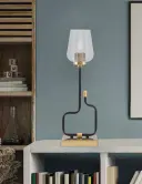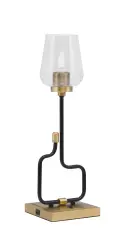 The Sandia Accent Lamp combines modern industrial style with practical functionality. Its matte black and aged brass finish creates visual interest, while the textured bubble glass shade adds character. Built-in USB ports make it perfect for bedside or desk use.