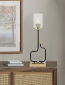 The Sandia Accent Lamp combines contemporary style with practical functionality. Its mixed-metal finish and unique bubble glass shade create visual interest, while built-in USB ports add modern convenience for charging devices.