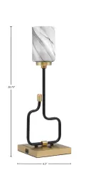 The Sandia Accent Lamp combines contemporary design with practical functionality. Featuring a sophisticated matte black and aged brass finish with unique onyx swirl glass, it includes convenient USB charging ports for modern living.