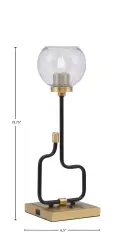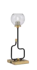 The Sandia Accent Lamp combines industrial style with modern functionality, featuring a striking two-tone Matte Black and New Aged Brass finish. The textured smoke bubble glass shade creates ambient lighting while built-in USB ports add practical convenience for charging devices.