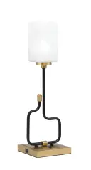 The Sandia Accent Lamp combines contemporary style with practical functionality. Featuring a sophisticated matte black and aged brass finish with elegant white marble glass shade, this compact lamp includes built-in USB ports for device charging—perfect for modern living.