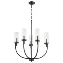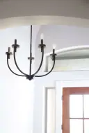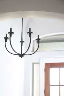 The Ladin 5-Light Chandelier brings a fresh, minimalist aesthetic with rounded angles and bold lines. Its neutral black finish creates a serene atmosphere while making a statement in any space.