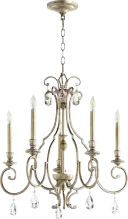 A fusion of two different classic styles, the Ansley 5-light chandelier combines a traditional Aged Silver Leaf frame with elegant crystal ornamentati...