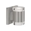 LED cylinder shaped updown wall sconce with glass discs. Metal details in black, brushed gold, brushed nickel or chrome finish, and is equipped with o...
