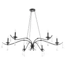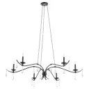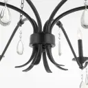 The Lorelei chandelier combines refined simplicity with restrained opulence through its matte black finish, sweeping curves, and hanging crystals. Perfect for those seeking transitional elegance with modern sensibility.