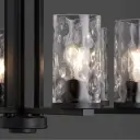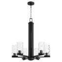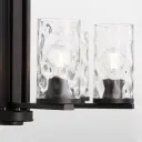 The Steinway chandelier brings soft contemporary elegance with its matte black finish and distinctive clear hammered glass shades. Six lights provide ample illumination while the textured glass creates beautiful light diffusion.