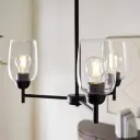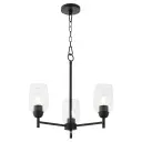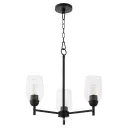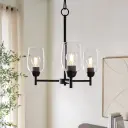 The Wallinger 3-Light Chandelier combines industrial design with classic lines, featuring matte black finish and clear glass shades. A versatile fixture that bridges modern and rustic aesthetics, perfect for various interior styles.