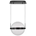 The Arvada pendant combines sleek modern aesthetics with energy-efficient LED technology. Its perfect sphere design features silk-screened acrylic with intricate patterns, creating ambient lighting ideal for contemporary spaces.