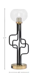The Sandia Accent Lamp combines contemporary style with practical functionality. Featuring a striking matte black and aged brass finish with unique bubble glass shade, this compact lamp includes built-in USB ports for device charging.