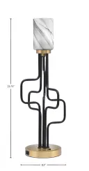 The Sandia Accent Lamp combines transitional elegance with practical functionality. Its mixed metal finish and unique onyx swirl glass shade create visual interest, while built-in USB ports add modern convenience for bedside or desk use.