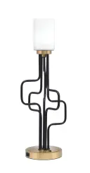 The Sandia Accent Lamp combines contemporary style with practical functionality. Its matte black and aged brass finish adds modern sophistication, while built-in USB ports provide convenient device charging.