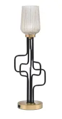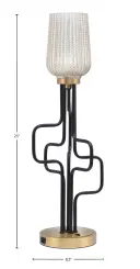 The Sandia Accent Lamp combines sophisticated style with practical functionality. Featuring a striking matte black and aged brass finish paired with a textured silver glass shade, this lamp adds elegance to any space while offering convenient USB charging ports for modern living.