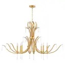 The Majesty chandelier delivers sophisticated glamour with its crystal-dressed design and gilded gold leaf finish. Eight lights provide ample illumination while the detailed arcs and modest bobeches create visual interest that bridges traditional and contemporary aesthetics.