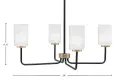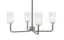 The Sandia 4 Light Chandelier combines contemporary design with classic elegance through its striking matte black and brass finish. White marble glass shades provide soft ambient lighting while the adjustable hanging height offers versatility.