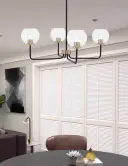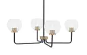 The Sandia 4-Light Chandelier blends industrial style with artisanal charm through its matte black and brass finish combination. Clear bubble glass shades create unique light diffusion and visual interest, perfect for contemporary spaces.