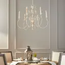 The Salento chandelier brings Old World European elegance with its delicate curved arms, candlestick-styled lights, and Persian White finish. Inspired by the Baroque and Rococo architecture of Italy's Salento peninsula, this 6-light fixture features leaf motifs and intentional asymmetry that add authentic character and timeless sophistication to traditional interiors.