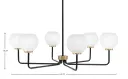 The Sandia 6-Light Chandelier combines matte black and new age brass finishes for a striking industrial-modern aesthetic. Six white marble glass shades provide soft, diffused lighting perfect for dining spaces and large rooms.