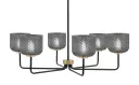 The Sandia 6-Light Chandelier combines matte black and new age brass finishes with smoke textured glass shades for a striking industrial-modern aesthetic. At 36 inches wide, it's perfectly sized for large dining tables and kitchen islands.